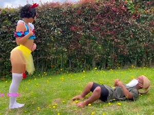 Laura Jones come Biancaneve ruba il latte da un nano incurante