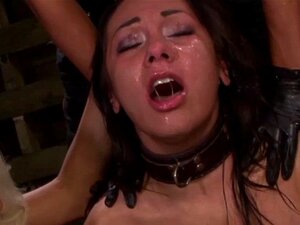 Sottomessa lesbica frustata e fisting in bondage. La ragazza lesbica Vivi Marie striscia sul trono della padrona Mona Wales, poi legata in un calcio sul collo viene frustata e fisted nella figa mentre viene vibrata sul clitoride