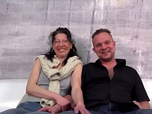 Moglie tedesca al primo incontro con maschio + maschio + femmina al casting a tre